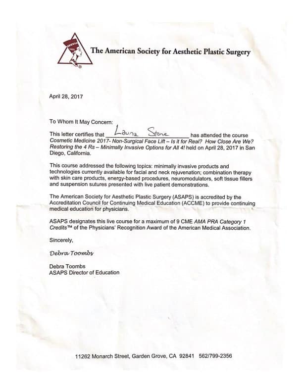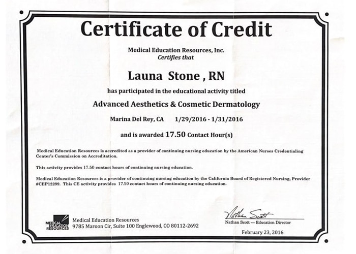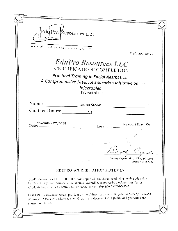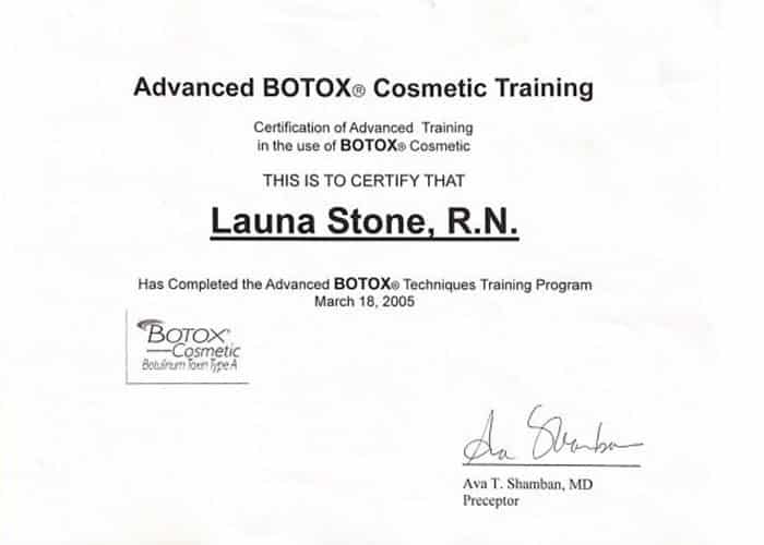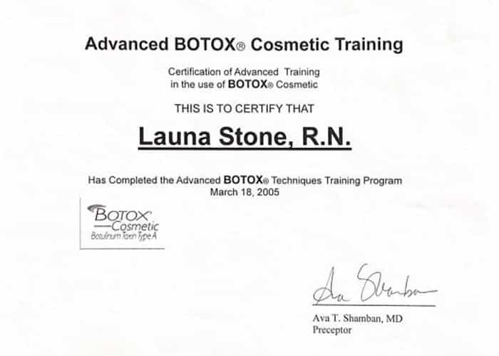 Launa’s experience and expertise will boost your self-confidence and leave you looking and feeling your best. Her clients include celebrities, business professionals and Stay at Home Moms. Launa has been featured as a “beauty expert” on the hit TV show “The Doctors” several times and has been featured in many magazines for her knowledge and expertise in the field of beauty and cosmetic injectables. Launa has received the Platinum Plus award from Allergan for being a top provider of Botox, placing her in the top 250 of all Botox cosmetic injectors Nationwide! This is not only a measure of volume, but an indication of trust and her level of commitment to excellence in providing the finest service to her clients. Calabasas Chamber of Commerce and The United Small Business’s Chamber of Commerce have awarded Launa Stone, R.N. with “Best Small Business of the Year” awards.
